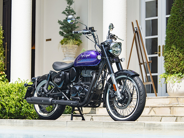 GOAN CLASSIC350は、同社の人気モデル「CLASSIC350」をベースに、ボバーカスタムされたネオクラシックモデル。インドのリゾート地「ゴア」の自由な文化や価値観から着想を得ている同モデルは、“美しさ、シンプルさ、親しみやすさ、ライディングする楽しさ”という、同社の哲学である「ピュア・モーターサイクリング」を体現している。エンジンには、空冷単気筒SOHCエンジンを搭載。また、人間工学に基づき設計された低めのフローティング‧シートやミニエイプハンドルなどを採用することで、ツーリング時の快適性を向上させている。