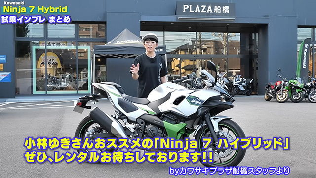 こんにちは。バイクジャーナリストの小林ゆきです。今日は、カワサキが世界初のスポーツタイプのハイブリッドとして発表した、「Ninja 7 Hybrid」と「Z7 Hybrid」をインプレッションします。まずは足つきをチェックして、後ほど試乗も行います。今回はカワサキプラザ船橋店さんから、場所と車両をお借りしました。試乗の様子もたっぷりお届けするので、ぜひ最後までご覧ください。