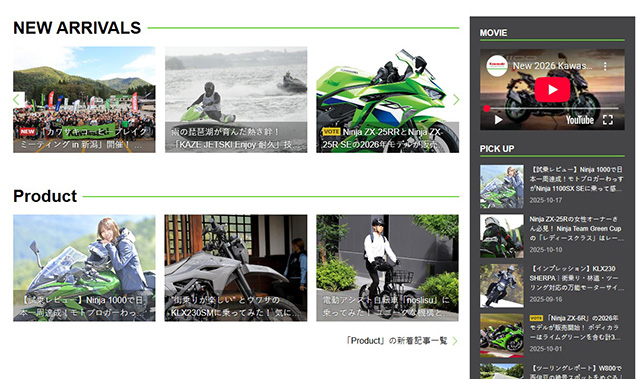 具体的には、公式サイトの商品情報に加えて、実際に試乗したインプレッション記事、イベントレポート、カワサキのあるライフスタイルやセーフティライディングなど、さまざまなコンテンツを通じて、カワサキの『今』と『これから』を伝える情報が掲載されている。