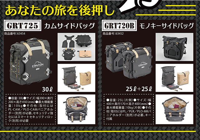 そもそも用途について「積載容量を確保したいが、車両重量をできる限り軽くしたいという方向けの商品」としているそうで、今回注目したカムサイドバッグとモノキーサイドバッグに関してはサイドパニアフィッティングが装着済み(もしくは装着予定)の方に向けた製品とのこと。従ってアドベンチャー系以外なら、ツアラーモデルのユーザーがターゲットとなり得る製品だと言えそうです。