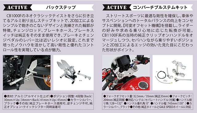 今回の“コレいい”第1弾は、発売から爆発的人気を誇るCB1000F用に多くのカスタムパーツを展開中のアクティブに注目です。