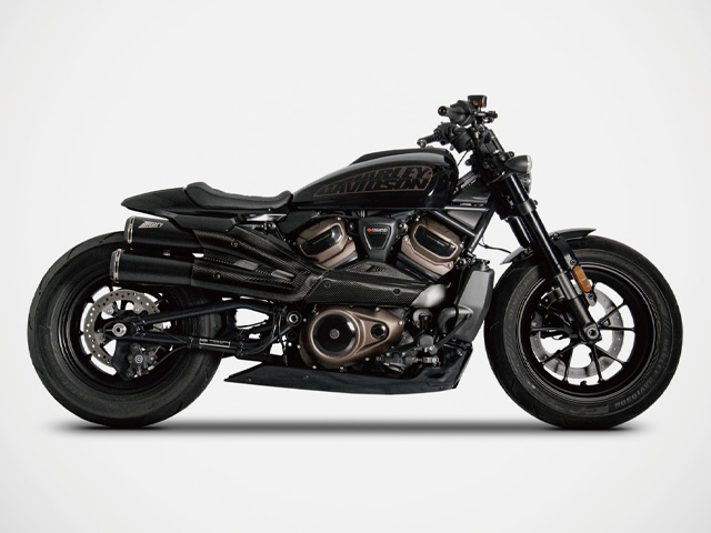 イタリアのエキゾースト・スペシャリストであるザード製スポーツスターS1250用マフラー。GTとTopGunの2タイプが出品され、マットブラック仕上げのサイレンサーとカーボンファイバー製ヒートシールドが目を惹きます。