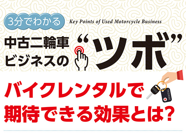 どのようなカタチでバイクレンタルを始めるにしても、需要が販売に繋がることは十分に考えられる。加えてレンタル車両は、修理等で預かった車両の代車としても利用できる。コロナ禍でバイクの免許を取った人は増加したが、そのなかで実際にバイクを購入した人となると、3割以下というデータもある。つまり、7割強の人に販売チャンスが残っているということ。キッカケさえあれば、販売に結び付く可能性は十分にある。その手段がバイクレンタルサービスなのだ。