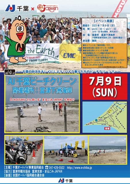 千葉オートバイ事業協同組合(以下、AJ千葉)は7月9日、「第14回AJ千葉ビーチクリーン2023 in 富津下洲海岸」を開催致します。